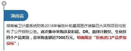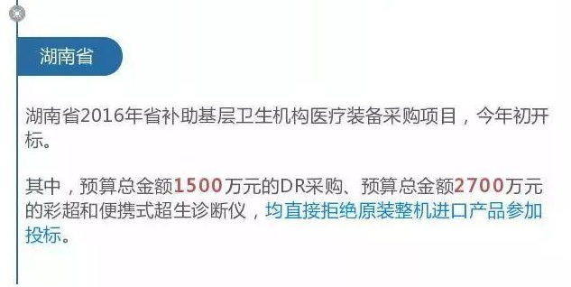 也就是說海南省此次基層醫療衛生機構標準化建設項目采購全部要國產!而且涉及DR、彩超機、多普勒生化分析儀等13大類設備!