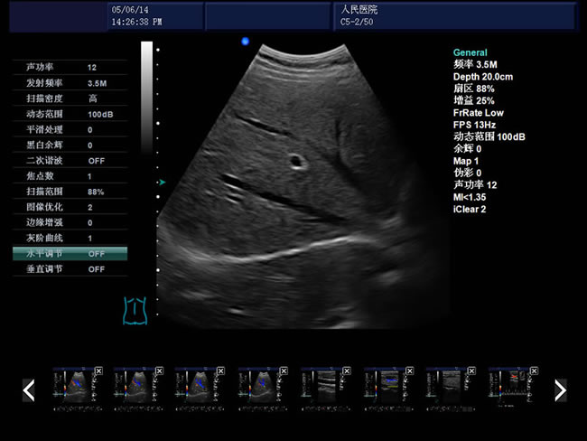 血流圖像:頻譜:B/D、B/C/D CFM:B|C|D、B|C|M、B|C雙實時、PW、CFM、CPA